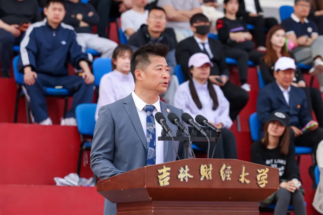 5月22日7:30,党委书记张炳辉宣布吉林财经大学第四十七届运动会开幕。