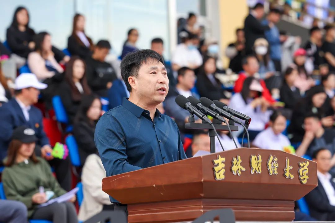 副校长王菁华在开幕词中表示,吉林财经大学始终把体育工作作为构建“三全育人”“五育并举”育人格局的重要一环,体育文化已深深融入学校血脉之中;过去一年,学校进一步深化体育教育教学改革,推进体育工作评价改革,完善学校体育竞赛体系,丰富学生课余体育活动,激发学生体育社团活力,不断加大体育设施建设投入,致力于提升师生身体素质,营造积极向上的校园体育文化氛围;王菁华希望每一位师生在运动中享受快乐,在运动中增进友谊,在运动中收获成长。希望全体学生以本届运动会为起点,走出宿舍、走向操场、走下网络,奔跑速度“快起来”、身体素质“强起来”、精神意志“硬起来”,为个人成长进步和民族复兴伟业储备终身受益的健康资本。期待你们用矫健的身姿绘制青春画卷,用昂扬的斗志谱写学校高质量发展新华章。