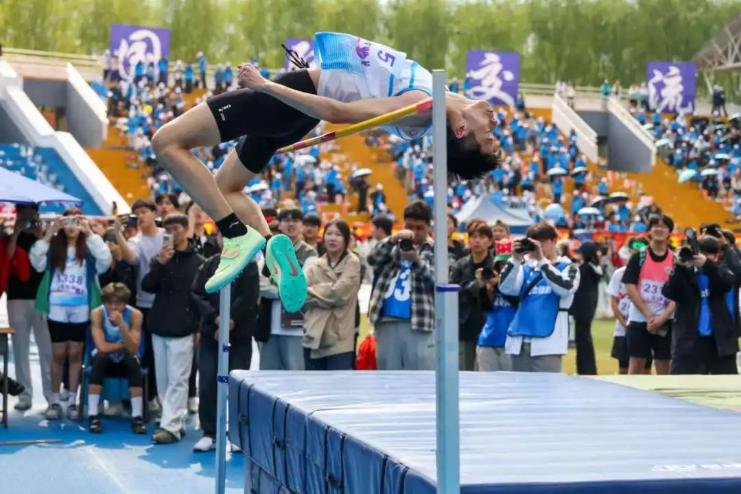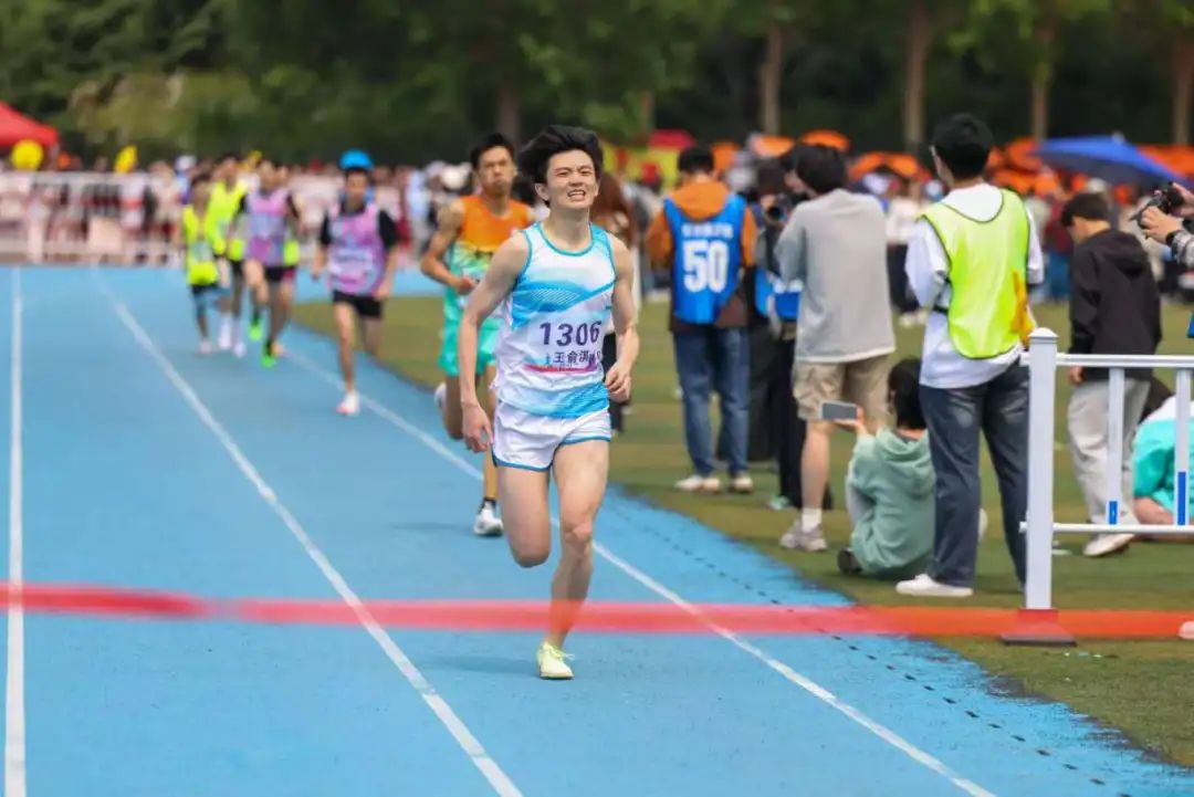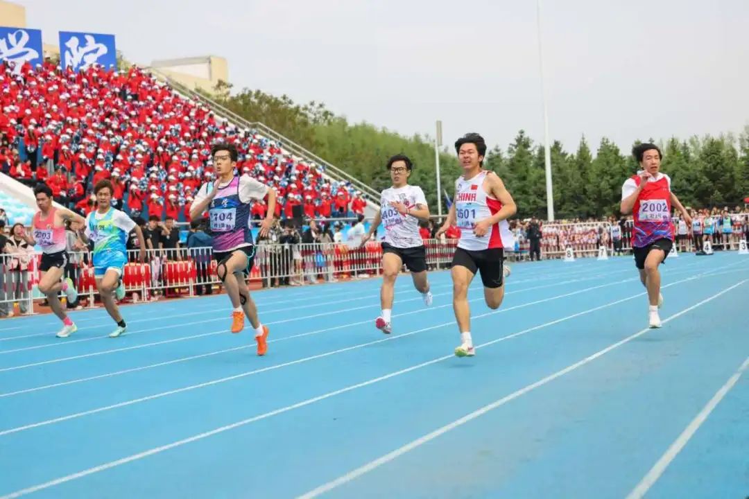 本届运动会,国际交流学院于东升同学在学生甲组男子跳高比赛中以1.90米的成绩打破了我校原1.85米的最高记录;管理科学与信息工程学院路明学同学在男子200米比赛中以22秒73的成绩打破了我校原22秒94的最高记录,在男子400米比赛中以49秒87的成绩打破了我校原50秒62的最高记录;管理科学与信息工程学院王永松同学在男子八百米比赛中以2分04秒41的成绩打破了我校原2分07秒77的最高记录;会计学院王荣华同学在女子200米比赛中以28秒47的成绩打破了我校原28秒98的最高记录。